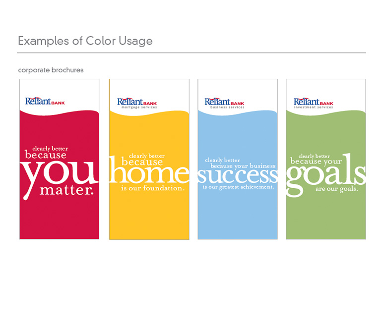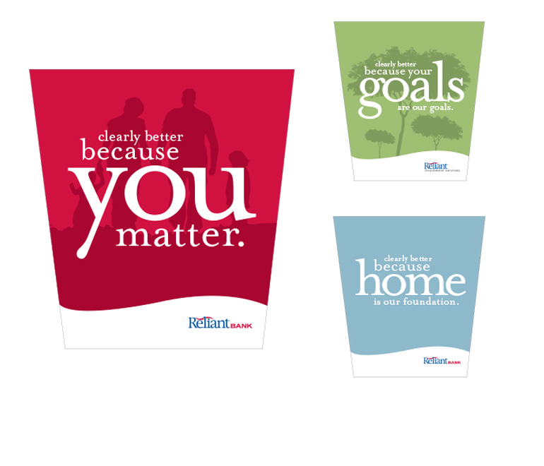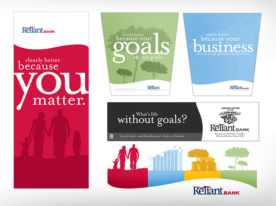 Reliant Bank is a small chain of banks in the Nashville area. They have been growing. However, they were finding that there brand presence wasn't as strong as their competitors. We were asked to help them grow their brand and expand beyond their limited look and feel. However, we couldn't reshape the logo.
