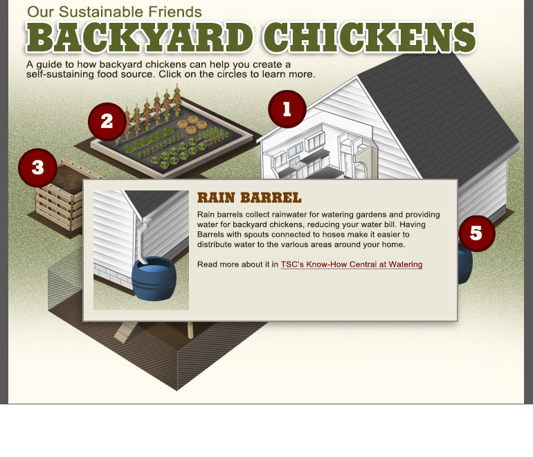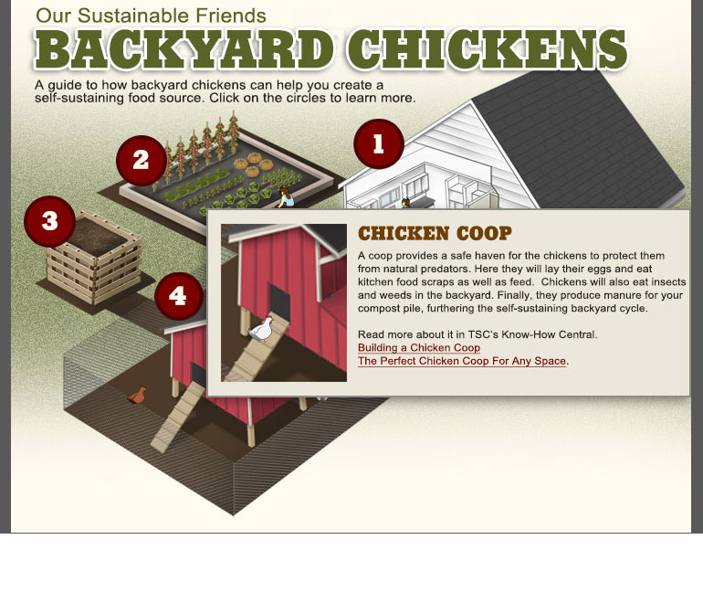 Environmental sustainability is an important initiative for Tractor Supply, so we were excited to help with this project. The interactive infographic demonstrates the environmental benefits of raising backyard chickens. We illustrated every bit of this one. We drew the house by hand and ruler and used the computer to give it life.