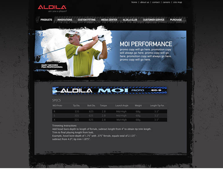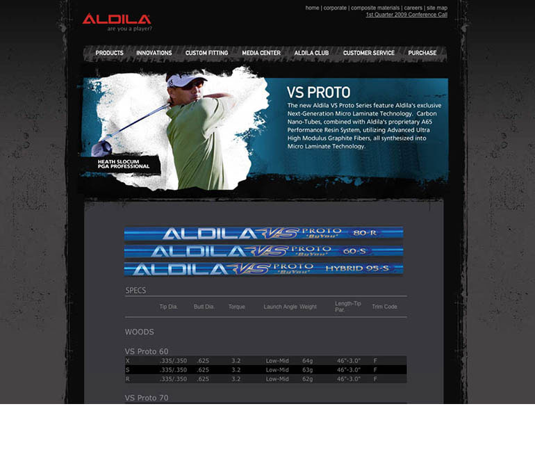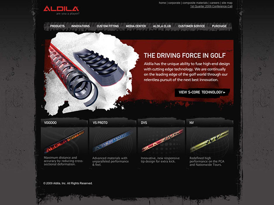We ended up designing and developing a site that set them so far apart from their competitors, their Pro Golfers on the tour even mentioned it. Younger golfers became attracted to the site to the point where Aldila started matching their print look to the site rather than the other way around. We were proud of the work we did for them.